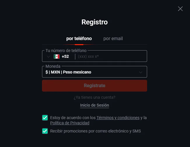 | Servicios | Casino, casino en vivo, apuestas e-sports, apuestas deportivas |